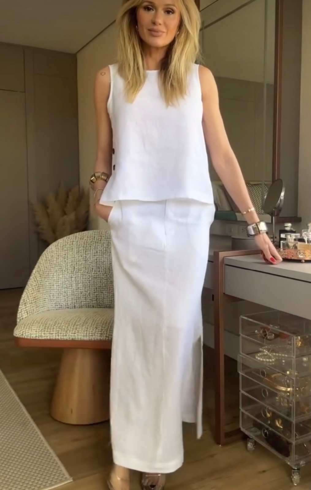 Be the first to review “PIPPA SIDE BUTTONS TOP SLIT MAXI SKIRT LINEN SET”